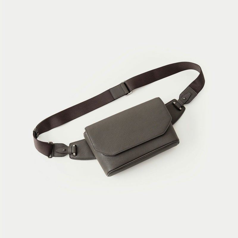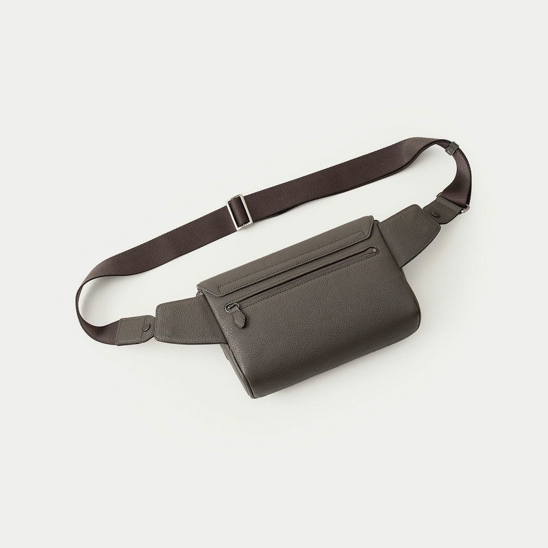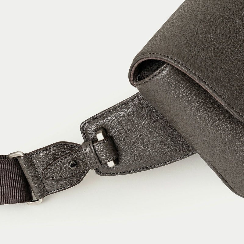 気軽に身につけたり自由に動けたり、解放的な気分で連れて行ける、大人カジュアルなボディバッグ。シンプルさを追求したデザインで、カジュアルダウンしたコーディネートに合わせやすく、コートやジャケットなどのエレガントな装いにも似合います。海外の有名メゾンでも愛用されている、フランス・ジュリアン社製のゴードレザー「シェーブル」を纏わせたボディは、前面とマチの間・背面と底面の間の繋ぎ目をなくすことで、装着時に体あたりが柔らかくなる機能性も実現。高級感あふれる立体的なシボに、ETiAM特注のセミマットな表情で上質感を演出するとともに、キズが目立ちにくく経年変化も余りないので、キレイな状態のまま長く使い続けられるのも魅力です。