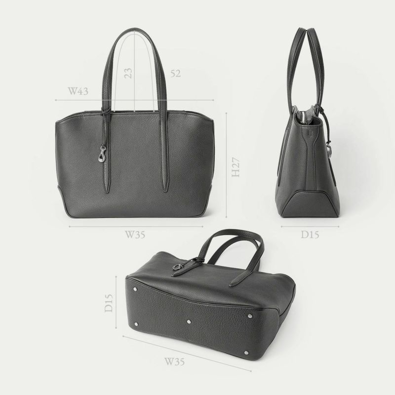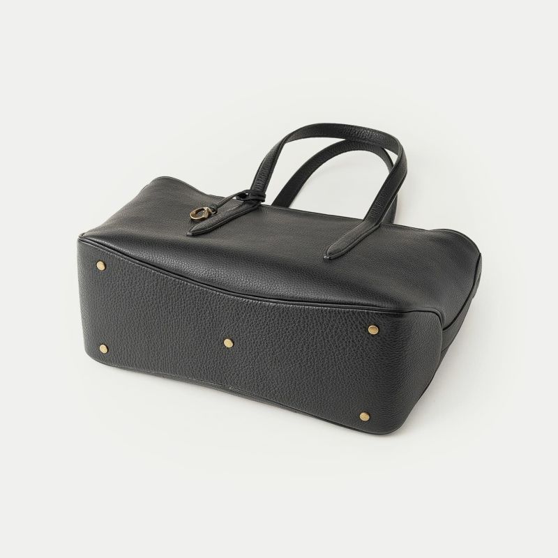 ソフトで馴染みやすい仕上がりで、プライベートにもビジネスにも柔軟に使える、A4サイズを収納可能なファスナー開閉式のトートバッグ。会社への出勤やカフェでのリモートワークには、ノートパソコンなどを収納・携帯するために大容量が必要ですが、休日などで収納・携帯する物が少ないときには、マチを内側に折り畳んでコンパクトにすることができ、2通りのシルエットを用途に合わせて自由に楽しめるのも魅力です。