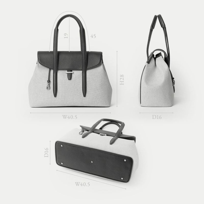旅行・出張・ゴルフなどで少し荷物が多いときにも、上品にコーディネートして持ち歩ける、13インチのノートPCやA4の書類を収納できて手持ちハンドル仕様のフラップトートバッグ。フロントとマチが一体になった、「キャンバス生地」一枚仕立てにすることで、ふっくらとした美しいシルエットを叶えるとともに、サイドに設けられたスナップボタンでマチ幅を調整できたり、フラップをイミテーションの差し込み金具にしてマグネットで簡単に開け閉めできたりするなど、エレガントなデザイン性とカジュアルな機能性を併せ持っています。