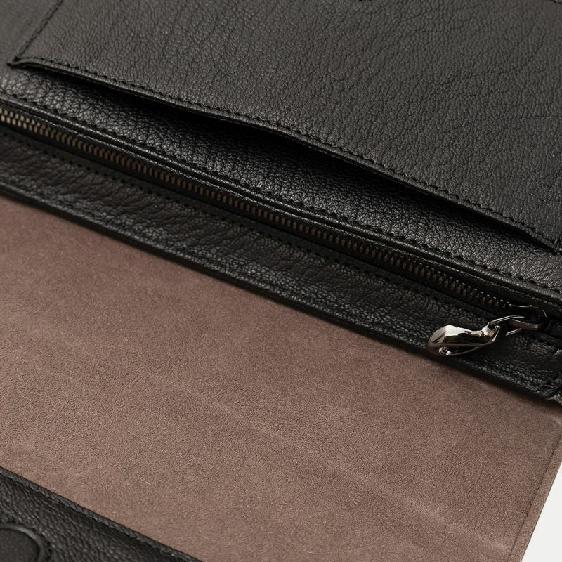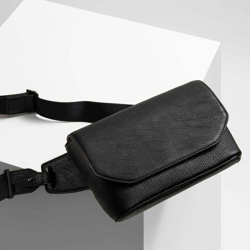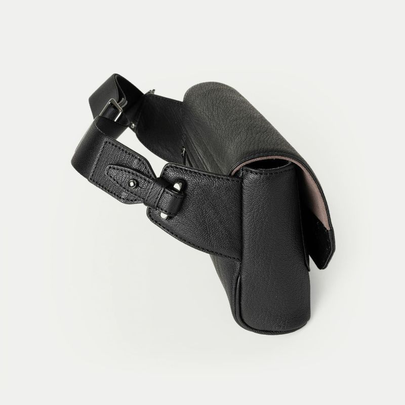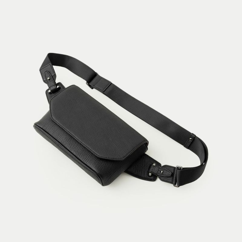 また、洗練されたデザインのアクセントにもなっているフラップは、マグネット式で簡単に開け閉めができるメリットを備えながらも、天ファスナーを設けることで開けた際に荷物の落下を防止する配慮も。さらに、装着時のコーディネートにおいて重要なファクターになるショルダーベルトは、シルクのように上品で落ち着いた中空糸ナイロンテープを採用することで、エレガントなコートやジャケットにも合わせられるなど、軽量な機能性とともに、その見た目にもこだわっています。