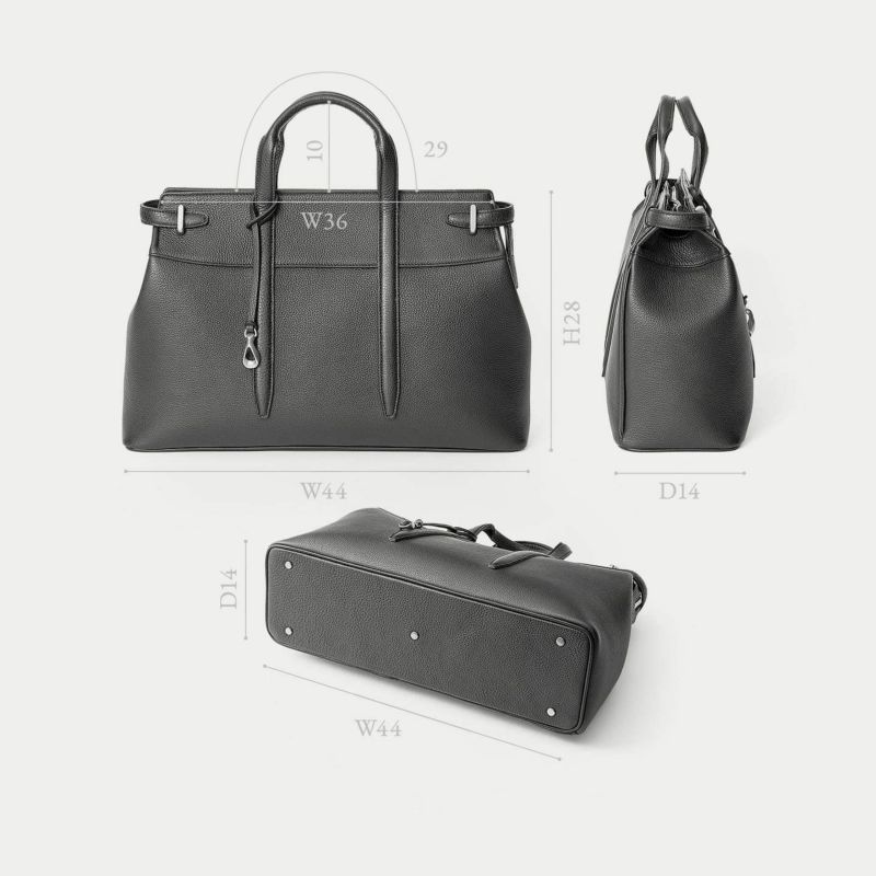 やわらかな質感でシボ感が魅力的な外装「シュリンクレザー」が、やさしく丸みを帯びたフォルムを、前胴とマチの間に繋ぎ目のない一枚仕立てでリッチに纏いながら、格好いい大人に似合う雰囲気を演出。そして、ジャケットの肩にシワが寄ってしまう、ショルダーベルトをあえて設けずに、片手で提げたり抱えたりして持ち歩くスタイルにこだわることで、自分らしい美意識を貫かせてくれます。