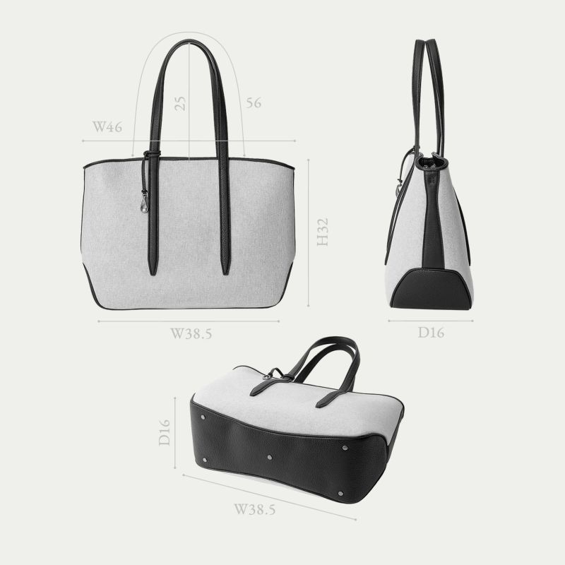 ソフトで馴染みやすい仕上がりで、ビジネスにもプライベートにも柔軟に使える、B4サイズを収納可能なファスナー開閉式の「キャンバス生地」をメインにしたトートバッグ。会社への出勤やカフェでのリモートワークには、ノートパソコンなどを収納・携帯するために大容量が必要ですが、休日などで収納・携帯する物が少ないときには、マチを内側に折り畳んでコンパクトにすることができ、2通りのシルエットを用途に合わせて自由に楽しめるのも魅力です。