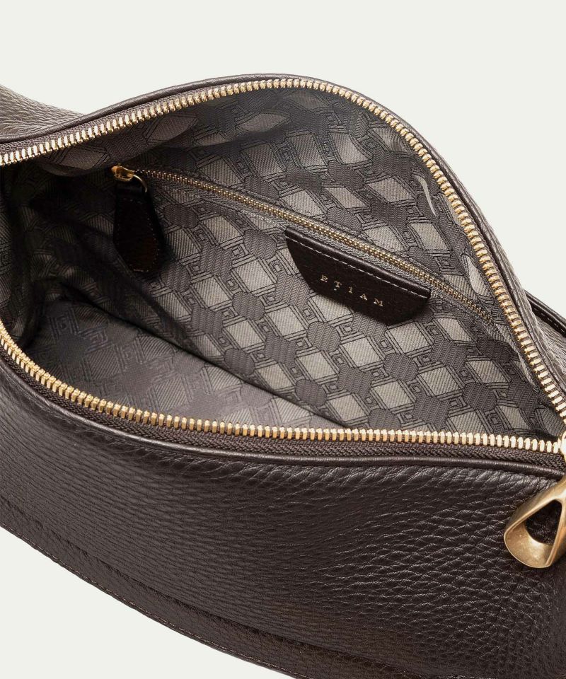 上辺(天面)を下辺(底面)よりも長く設計しながら、柔らかな円形状に膨らませることで、快適な使い心地と優雅な佇まいを両立させた、アーチショルダーバッグ。天面に設けたYKK最高峰のエクセラWファスナーが描く曲線美が、ファスナーの長さ・開口部の広さへと繋がり、収納物の見やすさ・出し入れしやすさへと導く、バッグとしての機能美へと昇華させています。