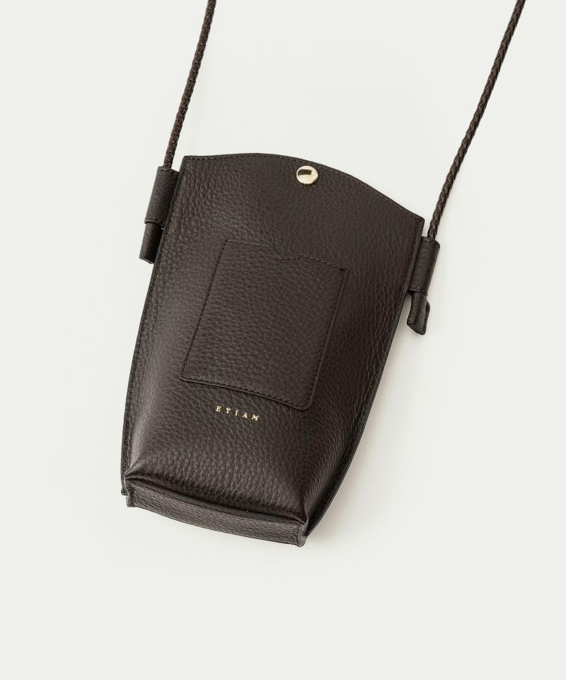 スマートフォンなどを品よく収納できて、貝のような優美なアーチを描くデザインとともに、ポケット感覚で軽やかに携えられる、モバイルショルダーバッグ。シボ感が美しい外装の「シュリンクレザー」は、前面・底面・背面の3枚構造で、洗練されたエレガントな印象へ。また、上部の横幅を広くしながら、下部をコンパクトに設計することで、中身を奥まで見渡しやすく、出し入れもしやすい快適なフォルムへと導いています。