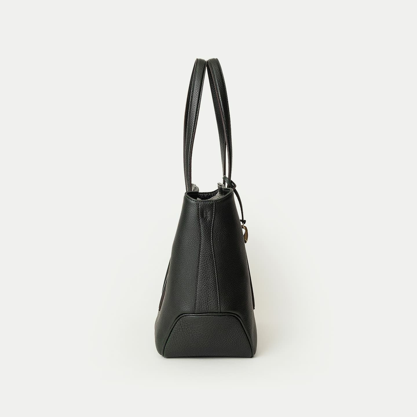 ソフトで馴染みやすい仕上がりで、ビジネスにもプライベートにも柔軟に使える、B4サイズを収納可能なファスナー開閉式のトートバッグ。会社への出勤やカフェでのリモートワークには、ノートパソコンなどを収納・携帯するために大容量が必要ですが、休日などで収納・携帯する物が少ないときには、マチを内側に折り畳んでコンパクトにすることができ、2通りのシルエットを用途に合わせて自由に楽しめるのも魅力です。