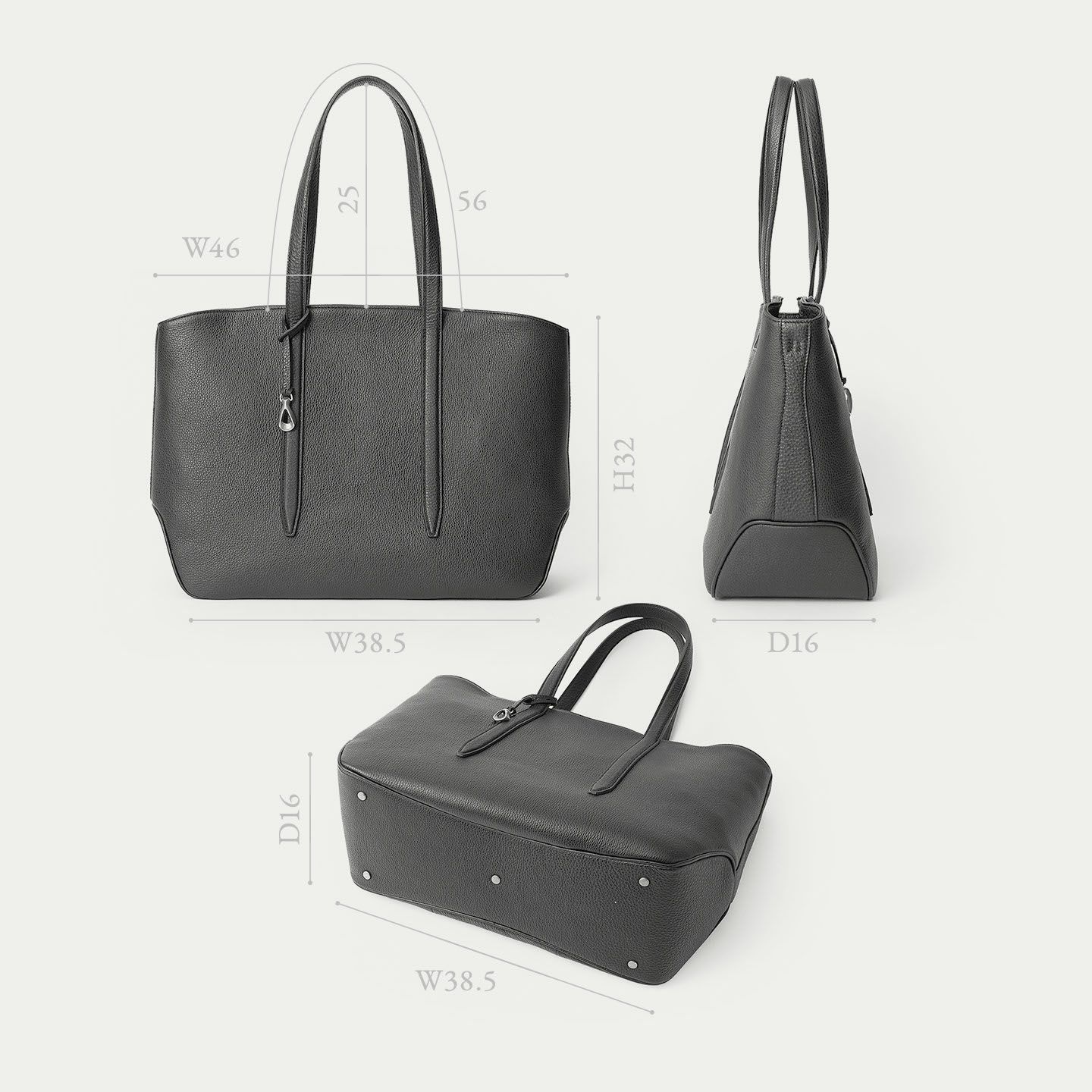 サイズ 横38.5 × 縦32 × マチ16、持ち手の長さ:約56、持ち手高さ:約25(cm)