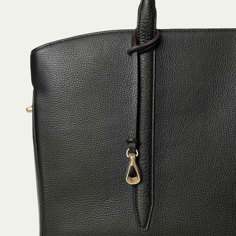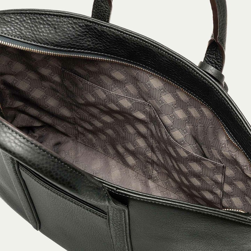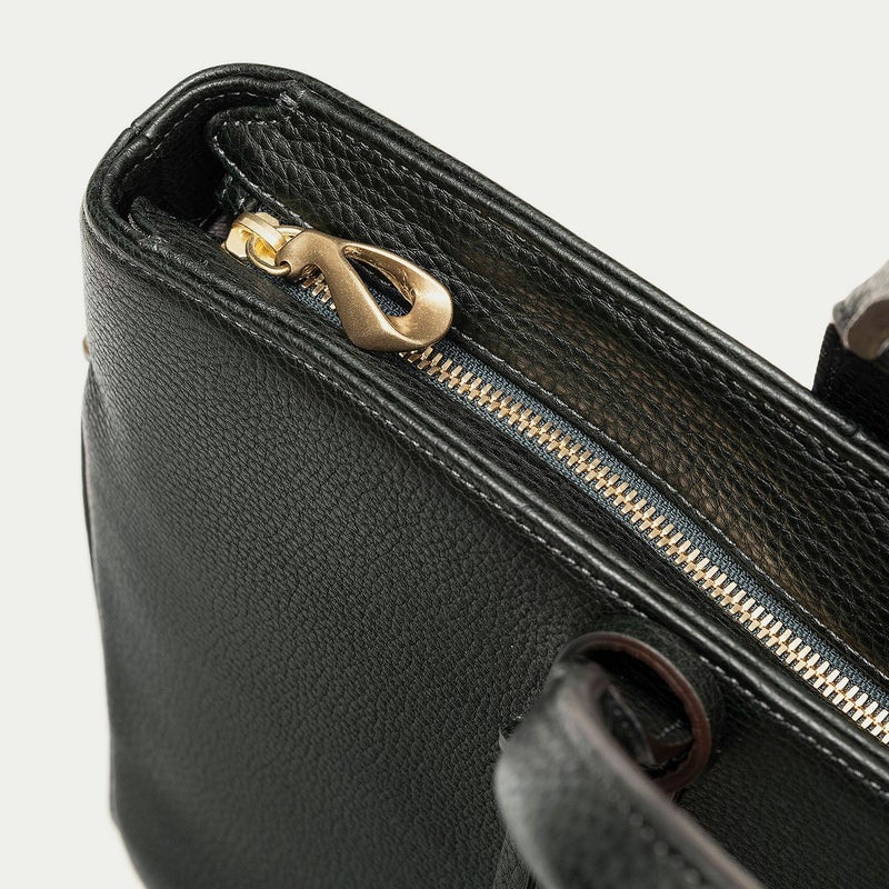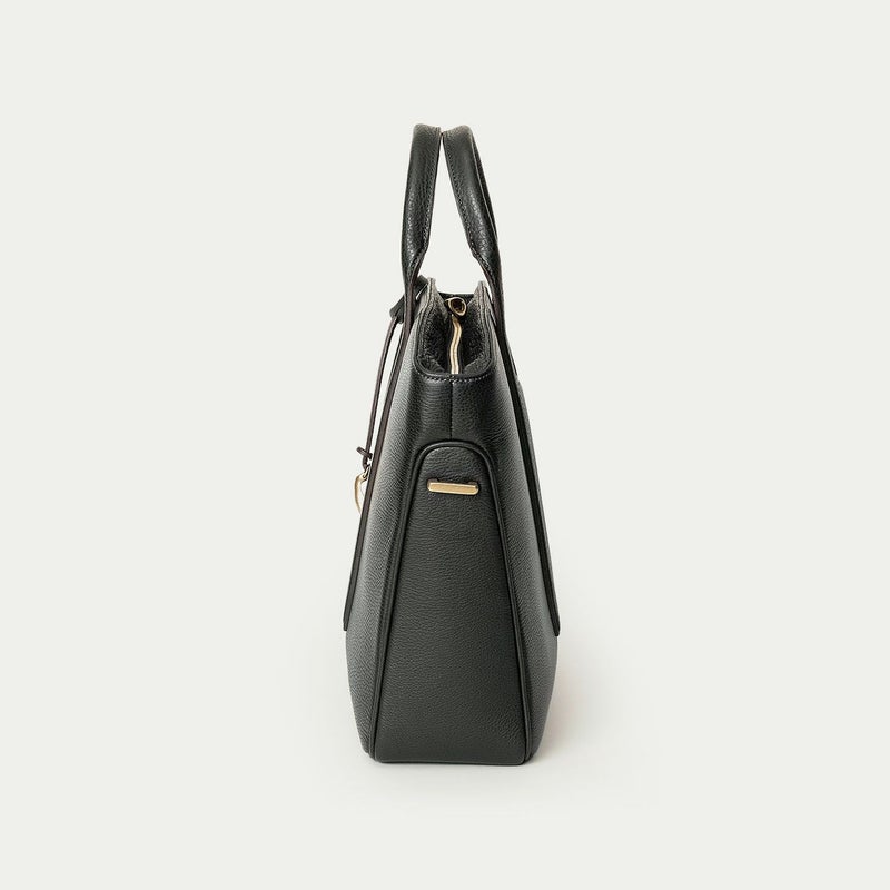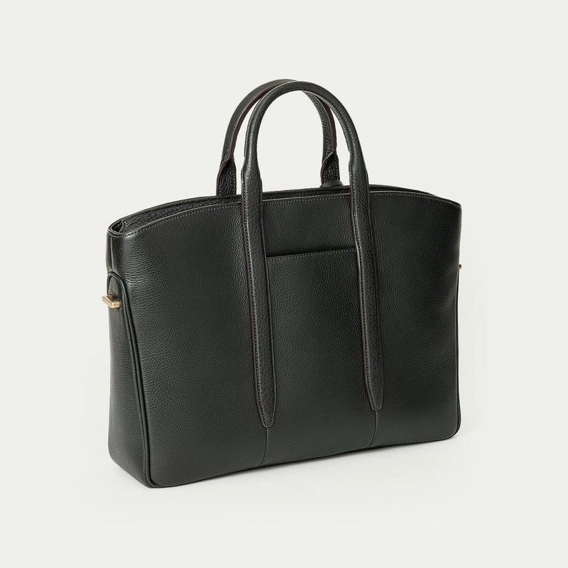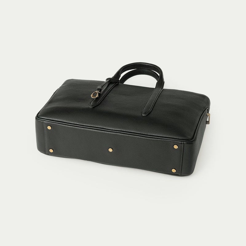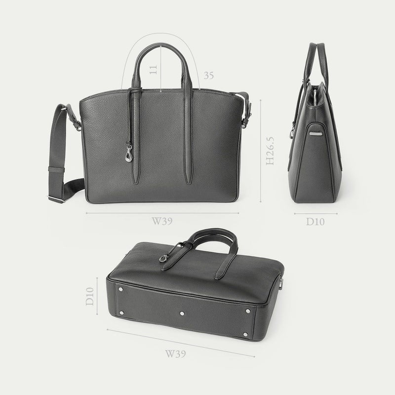 カジュアルなビジネススタイルにも似合うように、凛とした佇まいを醸し出しながらも、フォーマル過ぎない柔らかな曲線を併せ持たせた、スタイリッシュなブリーフケース。上辺を広く下辺を狭く設計することで、出し入れのしやすさとコンパクトに見えるスマートさを両立させ、滑らかでスムーズに携えて行けます。また、上面のファスナーを一段下げ、目立たさずに上品さを漂わせるとともに、小さいカーブを描く両端のデザインで、「シュリンクレザー」のボディとの隙間から中身が見えない細かな配慮も追求。ファスナーの先端も内装に収める構造にして、シルエットの美しさを損なわないように配慮しています。