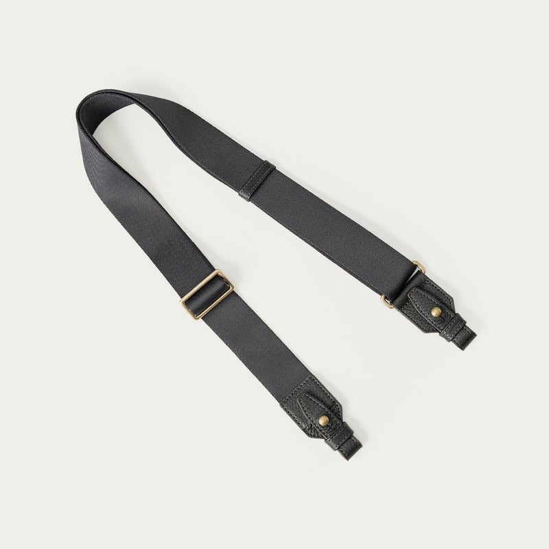 さらに、ハンドルとハンドルの間を狭くして緊張感を持たせながら、中央のグリップ部分は二つ折りにすることで持ちやすく、握るだけでなく手首にも掛けやすいように長さも微調整。10cmのマチでスリムながらも、底面から迫り上がった船底構造で自立でき、マチ上部の真鍮金具に付属のショルダーベルトを装着すれば、肩掛けのハンズフリーでも持ち歩けます。