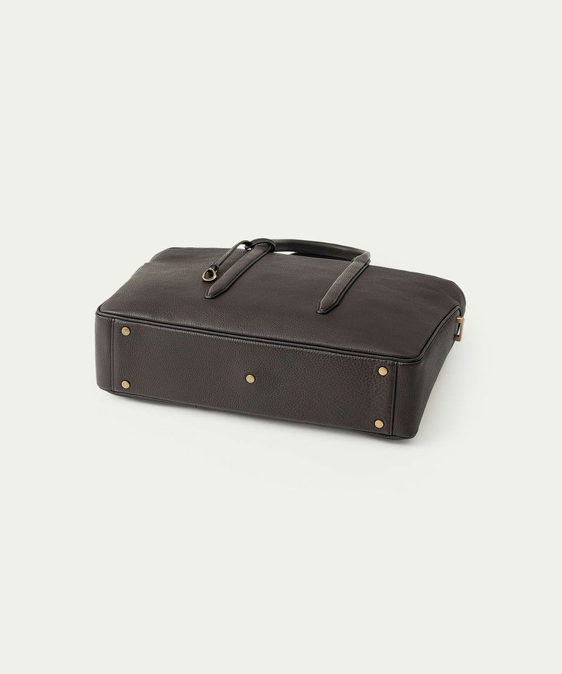 カジュアルなビジネススタイルにも似合うように、凛とした佇まいを醸し出しながらも、フォーマル過ぎない柔らかな曲線を併せ持たせた、スタイリッシュなブリーフケース。上辺を広く下辺を狭く設計することで、出し入れのしやすさとコンパクトに見えるスマートさを両立させ、滑らかでスムーズに携えて行けます。また、上面のファスナーを一段下げ、目立たさずに上品さを漂わせるとともに、小さいカーブを描く両端のデザインで、「シュリンクレザー」のボディとの隙間から中身が見えない細かな配慮も追求。ファスナーの先端も内装に収める構造にして、シルエットの美しさを損なわないように配慮しています。