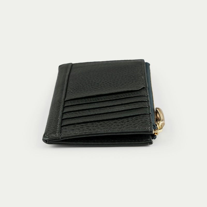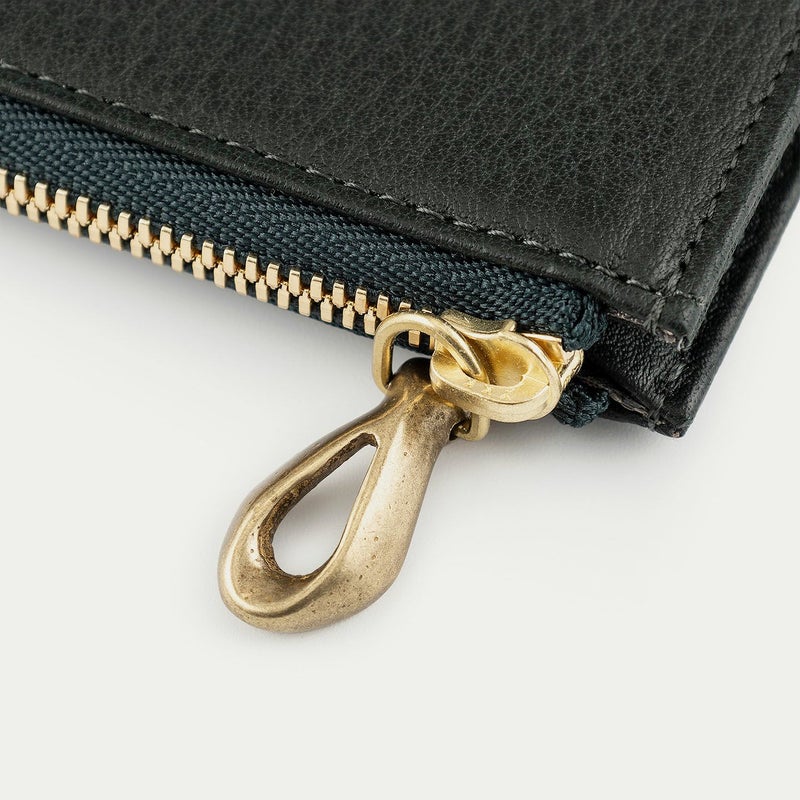 手のひらに収まるコンパクトなサイズ感でありながら、見た目以上の収納性を兼ね備えた、スタイリッシュなフラグメントケース。外装には、上品なシボ感が美しい「シュリンクレザー」を纏わせ、弾力のある柔らかな質感と優れた強度で、手に馴染みやすいのも特長です。背面に備えた5つのカードポケットは、それぞれのカットラインに緩やかな曲線を施し、個性的な佇まいへの美学を追求。また、高級感を醸すYKK最高峰のエクセラWファスナーに、メビウスの輪をモチーフにしたオリジナルの「真鍮金具」の引き手を組み合わせたデザイン性も魅力です。