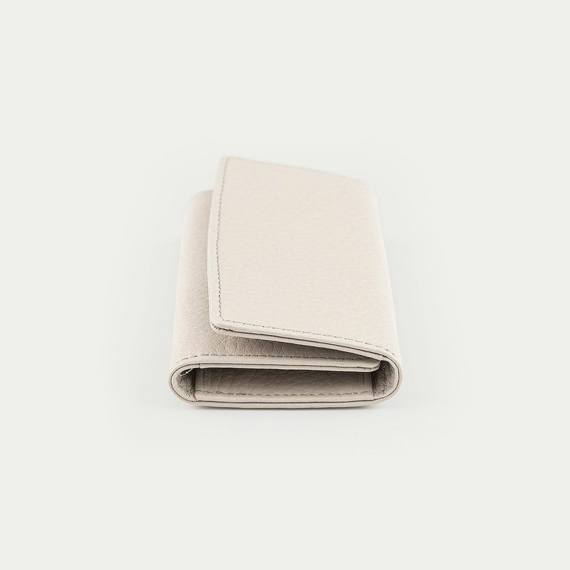 外装・内装のマテリアルとして採用している、上品なシボ感が魅力的な「シュリンクレザー」は、弾力のある柔らかな質感と優れた強度が特長で、手に馴染みやすく快適に使いこなせるアイテムへと昇華。さらに、三つ折りのカブセ先端には、緩やかな曲線が施され、シルエットの優雅さを演出しています。