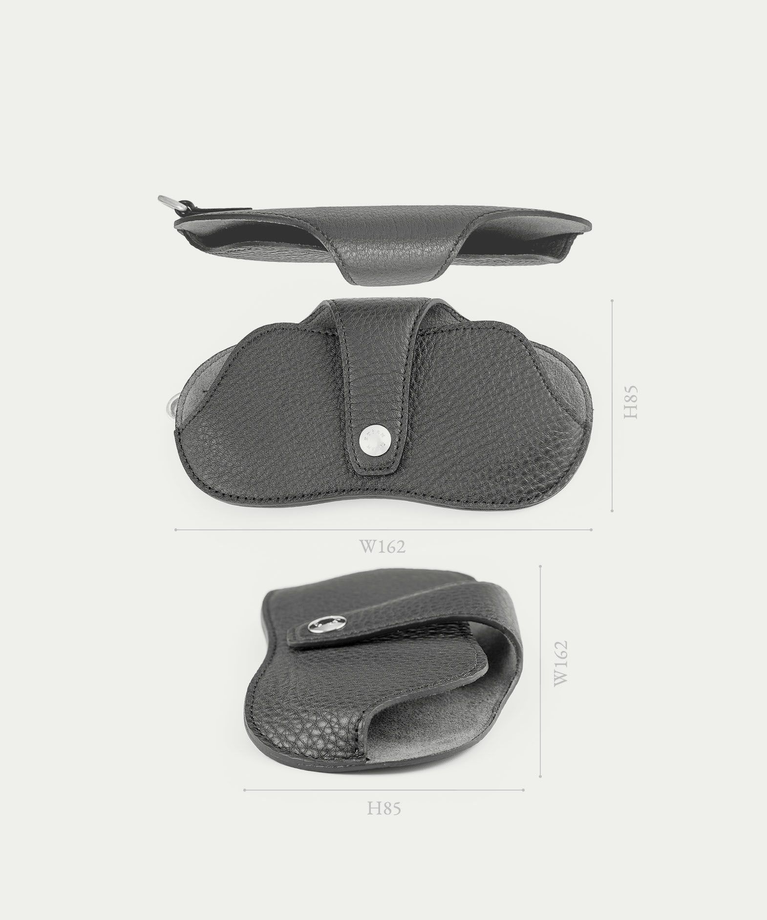 収納して持ち運ぶのではなく、必要なときに必要なものを組み合わせる感覚で、気軽に付け替えて携えられる、『Combi』シリーズのアイウェアケース。前面は、流線形で立体的なパターンにすることで、厚みのあるサングラスも収納でき、背面からベルト先端までのキレイな一枚仕立てや、高級感あふれる真鍮製のオリジナルホックをあしらっているのも個性的です。外装には、シボ感が魅力的な「シュリンクレザー」、内装・ベルト内側には、柔らかい起毛素材でレンズ・テンプルにキズをつけにくい「ポリエステルスエード生地」を採用し、外装と内装の間には、程よく柔らかい芯材を使用して、包み込むようにアイウェアを保護。紫外線対策や視力補正などで必要なサングラスやメガネを、やさしく美しく収納できるアイテムへと昇華させています。