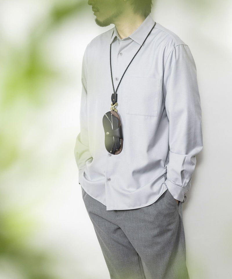 背面には真鍮製のDカンを備え、同じ『Combi』シリーズのネックストラップやハンドストラップと組み合わせて、アクセサリー感覚で携えられるのも魅力。首から下げたり手首に通したりして、統一感を醸しながらスタイリッシュで軽快にアイウェアを連れて行けます。