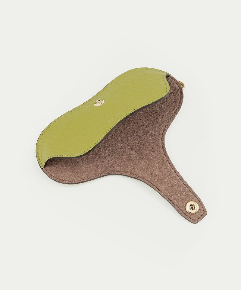 収納して持ち運ぶのではなく、必要なときに必要なものを組み合わせる感覚で、気軽に付け替えて携えられる、『Combi』シリーズのアイウェアケース。前面は、流線形で立体的なパターンにすることで、厚みのあるサングラスも収納でき、背面からベルト先端までのキレイな一枚仕立てや、高級感あふれる真鍮製のオリジナルホックをあしらっているのも個性的です。外装には、シボ感が魅力的な「シュリンクレザー」、内装・ベルト内側には、柔らかい起毛素材でレンズ・テンプルにキズをつけにくい「ポリエステルスエード生地」を採用し、外装と内装の間には、程よく柔らかい芯材を使用して、包み込むようにアイウェアを保護。紫外線対策や視力補正などで必要なサングラスやメガネを、やさしく美しく収納できるアイテムへと昇華させています。