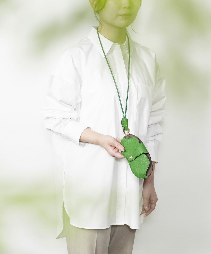 収納して持ち運ぶのではなく、必要なときに必要なものを組み合わせる感覚で、気軽に付け替えて携えられる、『Combi』シリーズのアイウェアケース。前面は、流線形で立体的なパターンにすることで、厚みのあるサングラスも収納でき、背面からベルト先端までのキレイな一枚仕立てや、高級感あふれる真鍮製のオリジナルホックをあしらっているのも個性的です。外装には、シボ感が魅力的な「シュリンクレザー」、内装・ベルト内側には、柔らかい起毛素材でレンズ・テンプルにキズをつけにくい「ポリエステルスエード生地」を採用し、外装と内装の間には、程よく柔らかい芯材を使用して、包み込むようにアイウェアを保護。紫外線対策や視力補正などで必要なサングラスやメガネを、やさしく美しく収納できるアイテムへと昇華させています。