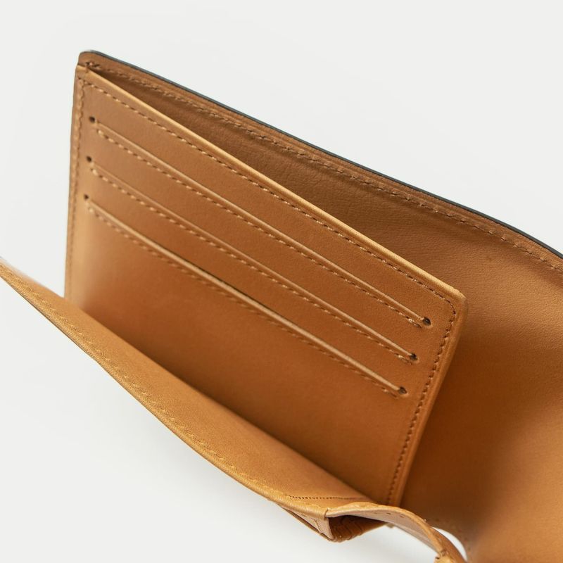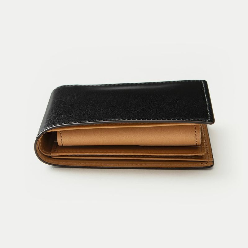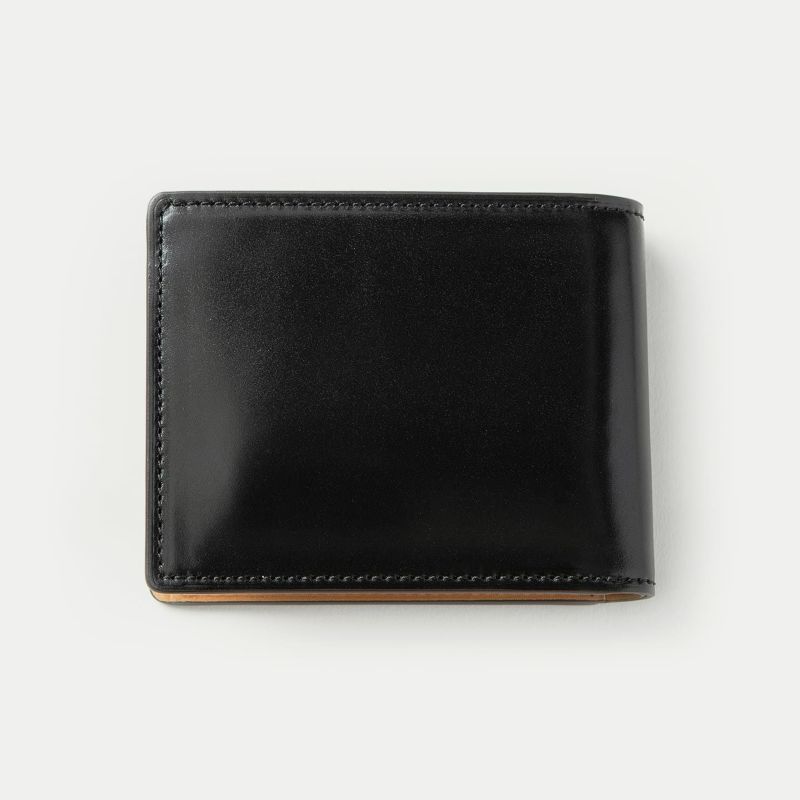 ファンダメンタルな普遍性と、ファッショナブルな独創性を併せ持つバッグブランドによる、時代や流行さえも超えていく新たな魅力を放つ二つ折り財布。“革のダイヤモンド”とも称される外装の「コードバン」は、趣のある重厚な風合いと深みのある上質な色合いへと導かれ、透明感のある美しい光沢を纏うとともに、丁寧なコバの仕上げもその品格を高めています。 きめ細やかで滑らかな内装の「カーフ」は、適度な弾力によるナチュラルなタッチ感が抜群で、心地よく使うことができることも愛着感へ。また、紙幣の出し入れをスムーズにするダブルアオリ構造の札入れや、仕切り付きで仕分けができるホック開閉式の小銭入れ、波紋を連想させる美しいカッティングのカードポケット4つ、札入れの仕切りのように設けた切り込み式のカードポケット3つのように、使いやすい機能性とデザイン性が凝縮されています。