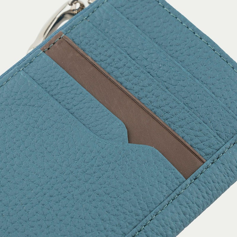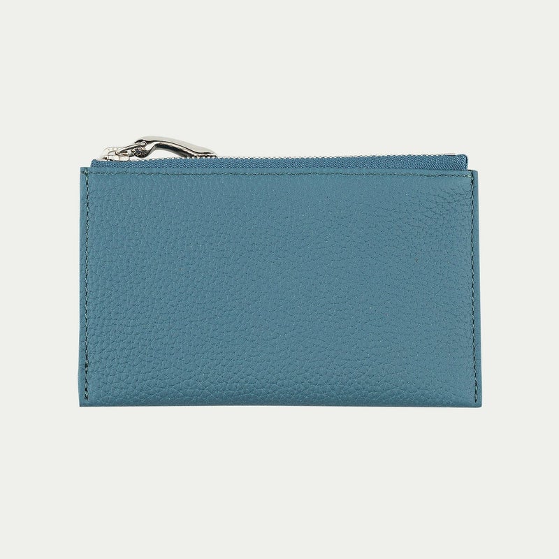 小銭だけでなく二つ折りにした1万円札も収納できる、少し長めのサイズ感にしたフラグメントケース。そのファスナーの引き手として、オリジナル真鍮製のエターナルチャームをあしらい、ダイナミックな曲線フォルムにすることで小さいながらも摘みやすく、クールなシルバーが洗練感も演出してくれます。