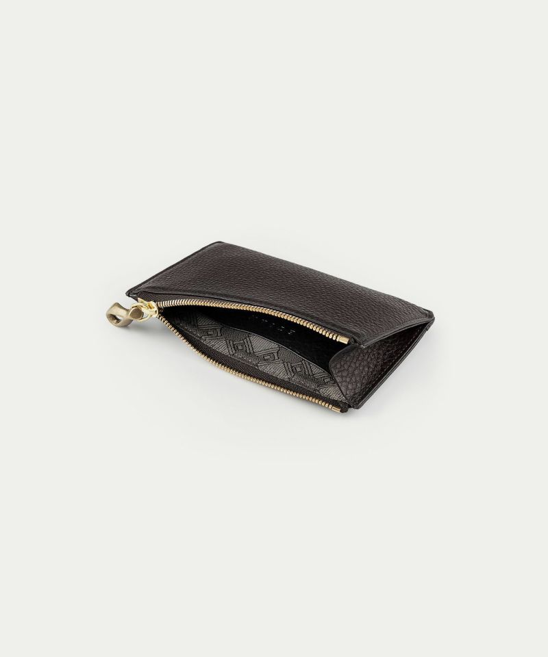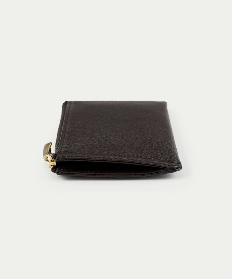 手のひらに収まるコンパクトなサイズ感でありながら、見た目以上の収納性を兼ね備えた、スタイリッシュなフラグメントケース。外装には、上品なシボ感が美しい「シュリンクレザー」を纏わせ、弾力のある柔らかな質感と優れた強度で、手に馴染みやすいのも特長です。背面に備えた5つのカードポケットは、それぞれのカットラインに緩やかな曲線を施し、個性的な佇まいへの美学を追求。また、高級感を醸すYKK最高峰のエクセラWファスナーに、メビウスの輪をモチーフにしたオリジナルの「真鍮金具」の引き手を組み合わせたデザイン性も魅力です。
