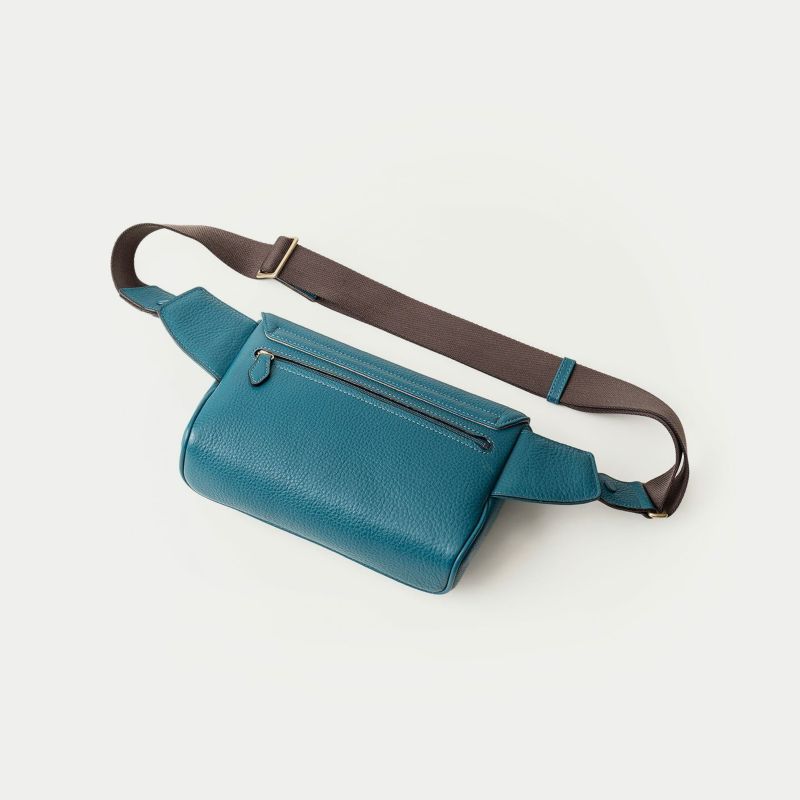 カジュアルダウンしたコーディネートにも合わせやすく、気軽に身につけて自由に動いたり歩いたりなど、解放感あふれて気分も上がるボディバッグ。前面とマチの間、背面と底の間の繋ぎ目をなくすことで、すっきりとした一枚仕立ての印象と、ふっくらとした魅力的なシルエットへと導くとともに、装着時の体あたりも柔らかくなる実用性・機能性も兼ね備えています。