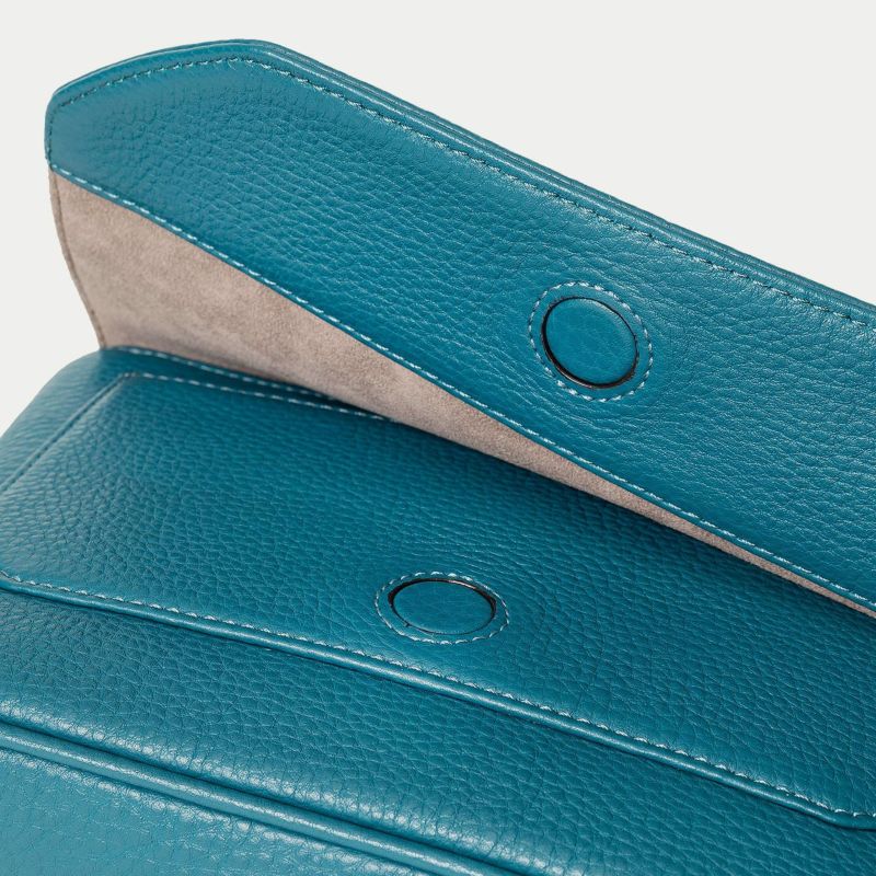 また、洗練されたデザインのアクセントにもなっているフラップは、マグネット式で簡単に開け閉めができるメリットを備えながらも、天ファスナーを設けることで開けた際に荷物の落下を防止する配慮も。さらに、装着時のコーディネートにおいて重要なファクターになるショルダーベルトは、シルクのように上品で落ち着いた中空糸ナイロンテープを採用することで、エレガントなコートやジャケットにも合わせられるなど、軽量な機能性とともに、その見た目にもこだわっています。