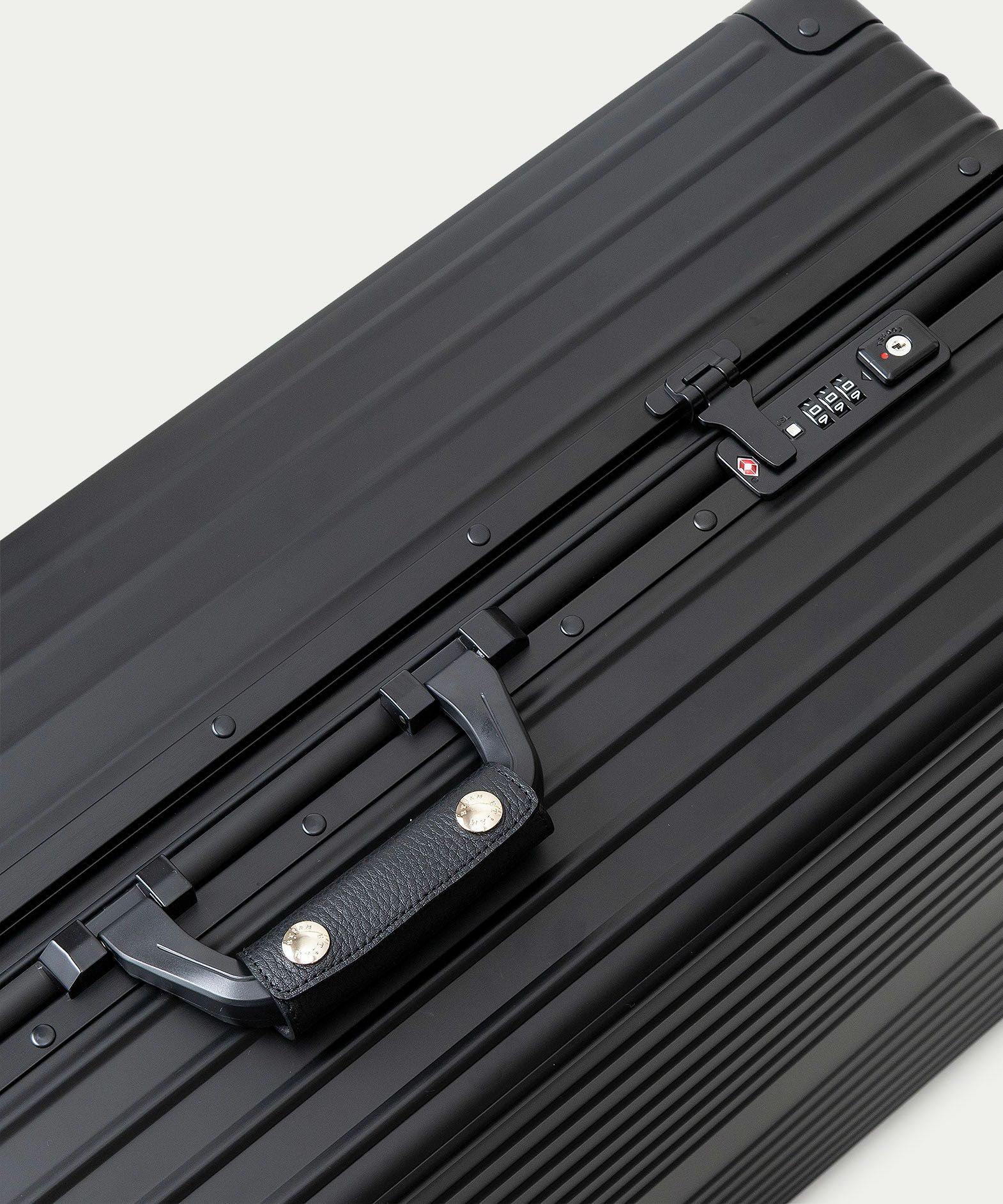 本体の素材には、高品質なアルミニウム合金〈5052-H32〉を採用。建築外装材・ノートPCなどにも使用される信頼性の高さと、耐食性・成形性・軽量性に優れているのが特長です。アルミニウム加工に特化した工場で、フレーム・ボディそれぞれを専用機械で精密に成形。平面1枚のアルミ板から、プレス・切り出し・成形する工程を経て、一体感のある美しいフォルムへと仕上げています。そして、洗練された輝きを放つ柔らかな曲線と上品な光沢による、クラシックな佇まいと存在感が、旅のスタイルを格上げするように演出。使い込むほどに刻まれる小さな凹みやキズは、ETiAMのバッグにも使われている「シュリンクレザー」のハンドルカバーやネームタグとともにに、味わいを増しながら思い出深く育っていくのも魅力です。